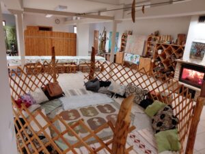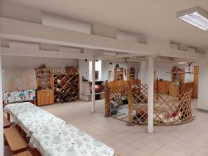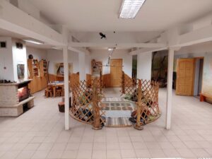 Interaktív beltéri állomások: túrabringa, barlang, erdei kuckó, repülőszerkezetek